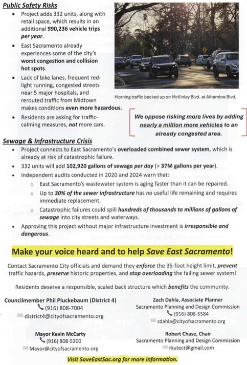 Early hearings are where decision-makers gauge public concern. Numbers matter. A strong turnout demonstrates that East Sacramento residents are engaged and expect development that respects neighborhood scale and character.
