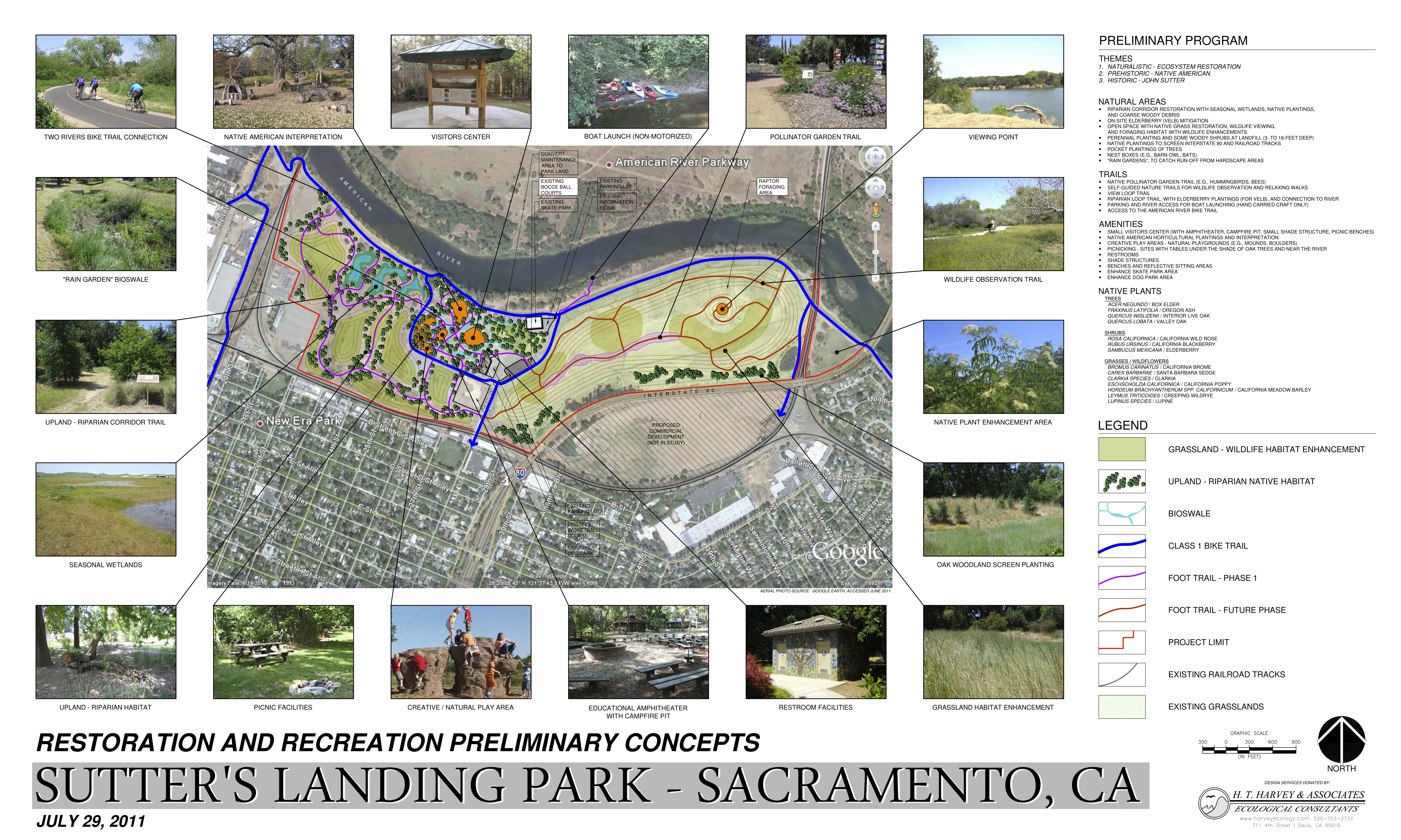 Neighbors in Midtown started this project as soon as the city closed the dump. For years park activists worked to convert the landfill and build up the park area. The tipping point has come for the project. On Wednesday there will be a meeting with city officials to decide the future of the park. The neighborhood’s vision is this: an inner city gateway to the American River, bike access, interpretive areas, kid friendly nature access, river habitat, and more. Come to the public meeting to convince our elected officials to make healthy choices for our city –– “Future Planning and Development at Sutter’s Landing Park” will be held on Wednesday, June 19th, from 7-8:30 at the skateboard park at Sutter’s Landing (next to the parking lot at the very end of 28th St.). Below is the vision design and a note from Friends of Sutter’s Landing.