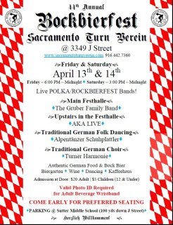 So find out exactly what Bockbier is and how to drink it at the 44th Annual Sacramento Turn Verein Bockbierfest.