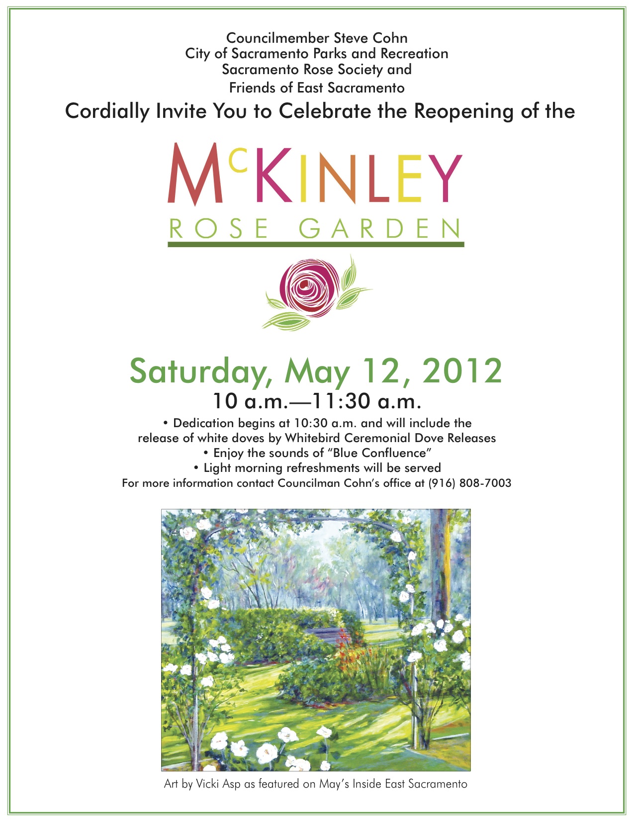 Congratulations to Friends of East Sacramento and the City of Sacramento for the rehabilitation of the Mckinley Park Rose Garden. Now, come join the fun and celebrate the accomplishment!