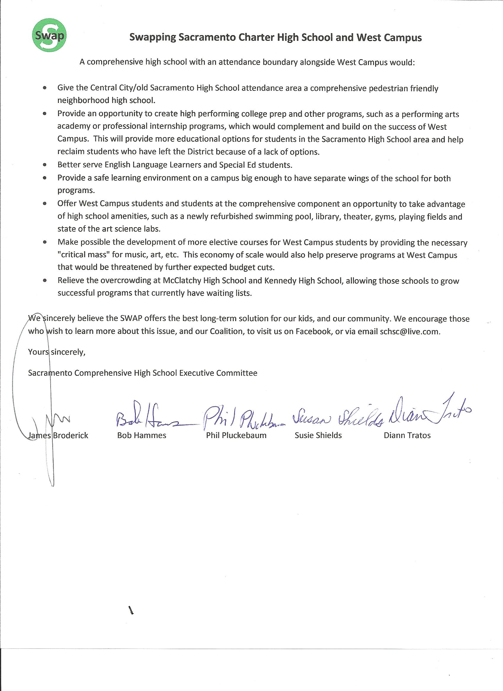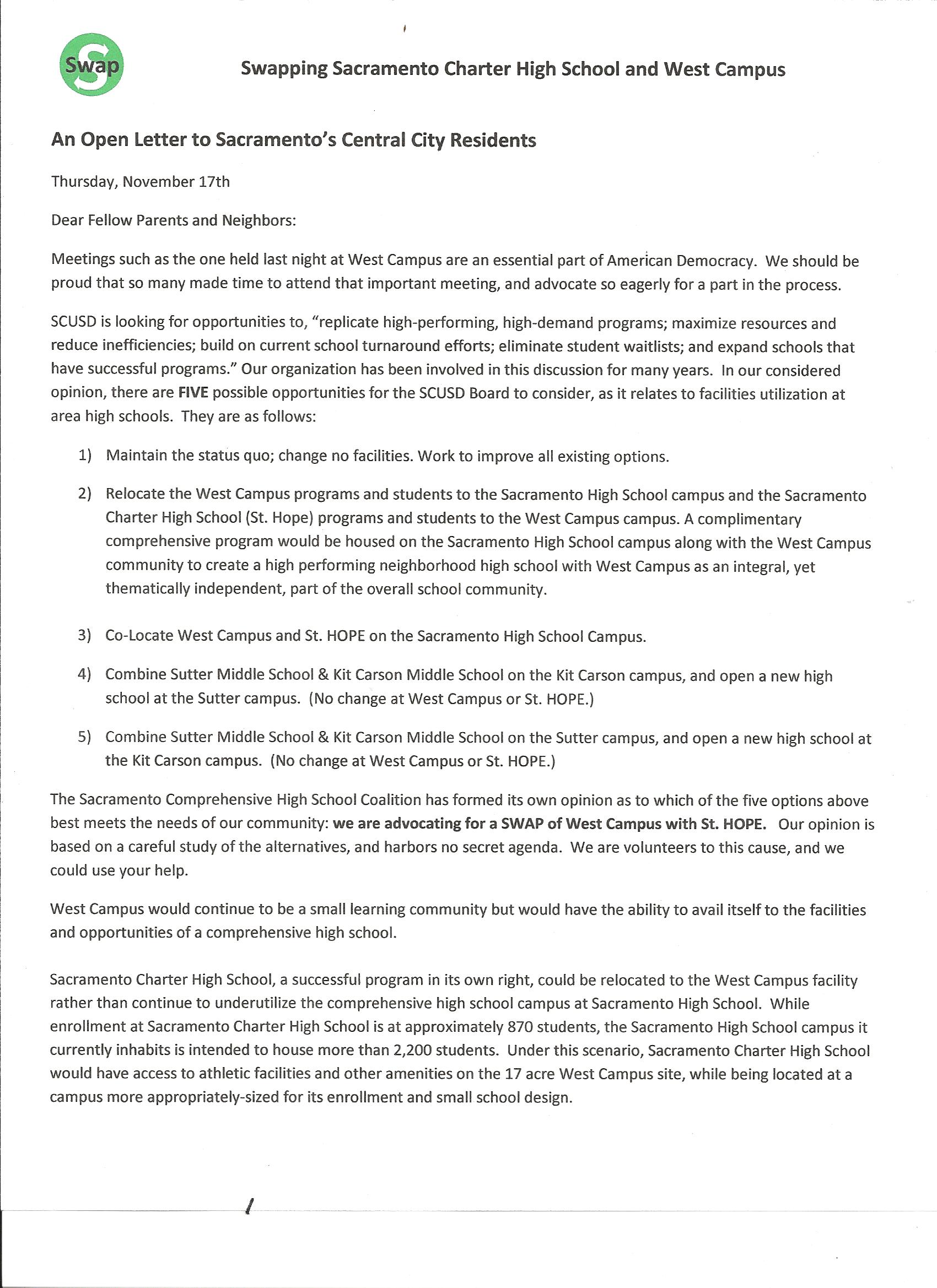 Open Letter From Swapping Sacramento Charter School and West Campus (SWAP)